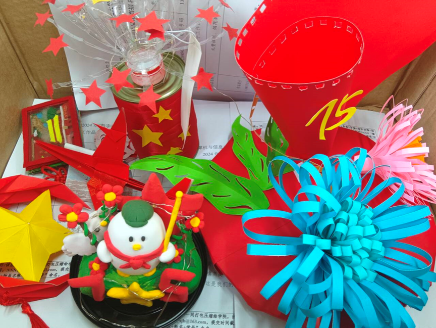 和物电院同学们纷纷利用所学的计算机编程知识,制作前端页面、编写祝福语和使用turtle绘图等。在手工制作中,参与者们利用纸箱、粘土、塑料瓶等物品创作出富有创意和爱国元素的手工作品。同时美设彩票网站