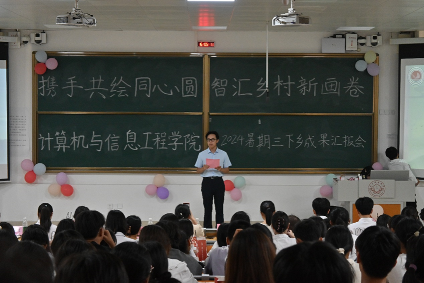 活动初始,同学们通过观看“三下乡”回忆视频了解“翔鹭”智汇民族团队在“送教下乡”、调研马山县林圩镇特色产业以及传承民族文化方面的基本工作内容。随后,“翔鹭”团队队长陆冬霞和各小组代表依次上台发言,汇报“三下乡”的成果、趣事及队员们遇到的困难,表达对“三下乡”的感悟与收获。最后,史朝有老师对活动进行总结,他肯定了本次活动的成果,“翔鹭”智汇民族实践团队成员用实际行动诠释了青年学子的责任与担当,为铸牢中华民族共同体意识事业注入了新的活力。