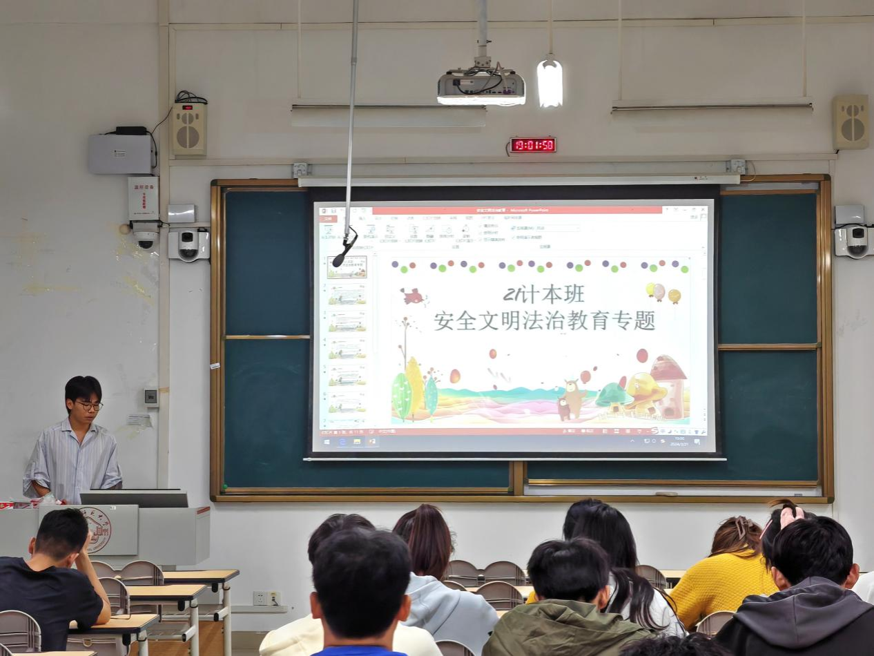 21计本班开展安全文明法治教育主题班会。本次会议由班长杨千华主讲。