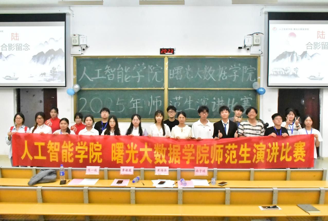 在实验二号教学楼B108教室举办了2025年师范生演讲比赛院级选拔赛。比赛邀请辅导员黄海泳、覃敏薇、团委副书记(学生)南子琪和主席团成员陈一航担任评委。