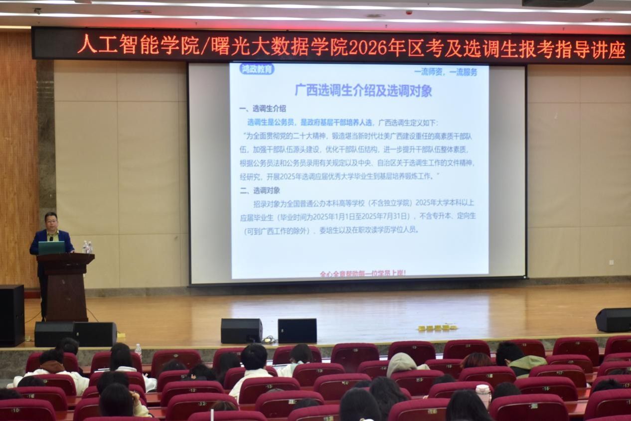 在图书馆报告厅举办2026年广西区考及选调生报考指导讲座。讲座特邀鸿政教育资深讲师宋秉桂主讲,彩票网站