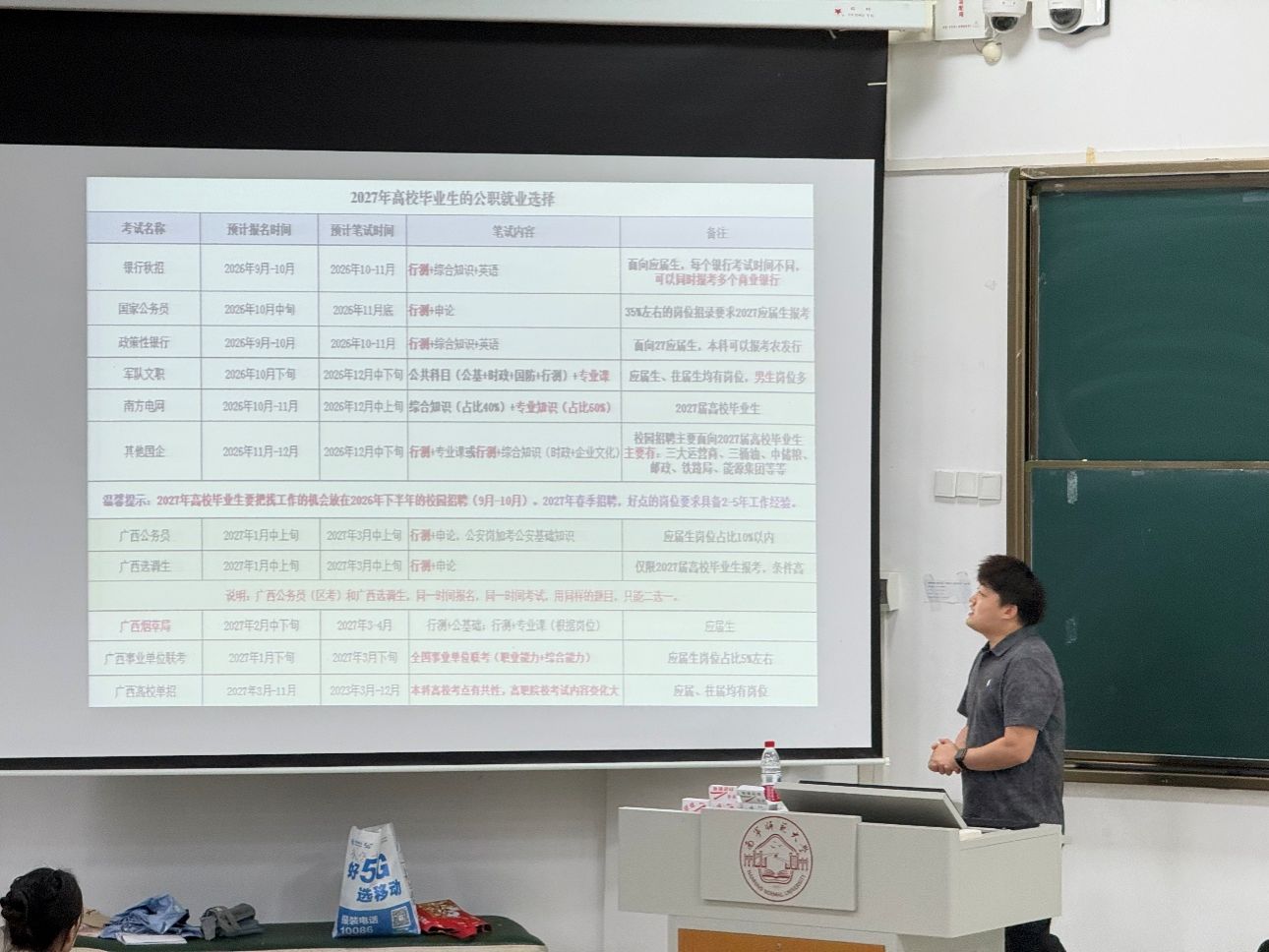 在武鸣校区武1-214教室成功举办公职就业指导分享会。讲座特邀中公教育肖钧泽老师主讲,十大线上彩票网站排名